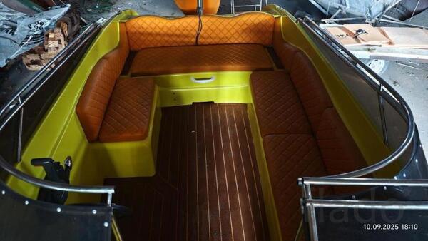 Комплектация: ветровое стекло тонированное с открывающейся центральной секцией для удобного управления; леера из нержавеющей стали передние D25мм H75мм длиной 2х2000мм с поручнем L-400мм H-300мм для безопасности; утки швартовые нержавеющие 150 мм; мягкая мебель в передне-заднем салоне с дополнительными Г-образными диванами-рундуками (3 шт., цвет на выбор) для комфортного размещения до 8 человек.
