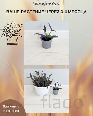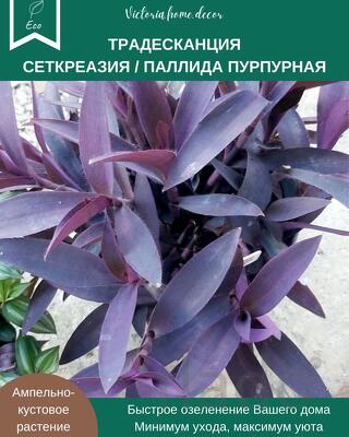 Традесканция Setcreasea-Pallida Purpurea / Сеткреазия-Паллида пурпурная - эффектное декоративно-лиственное растение из семейства коммелиновые с уникальной фиолетово-пурпурной окраской листьев. Этот неприхотливый многолетник отличается быстрым ростом и способностью образовывать плотные декоративные куртины. Растение прекрасно подходит как для комнатного выращивания, так и для открытого грунта в теплый период. Традесканция идеально подходит для создания ярких акцентов в интерьере, оформления балконов и террас. Растение неприхотливо в уходе, быстро адаптируется к различным условиям освещения и влажности, что делает его отличным выбором как для начинающих, так и для опытных цветоводов.